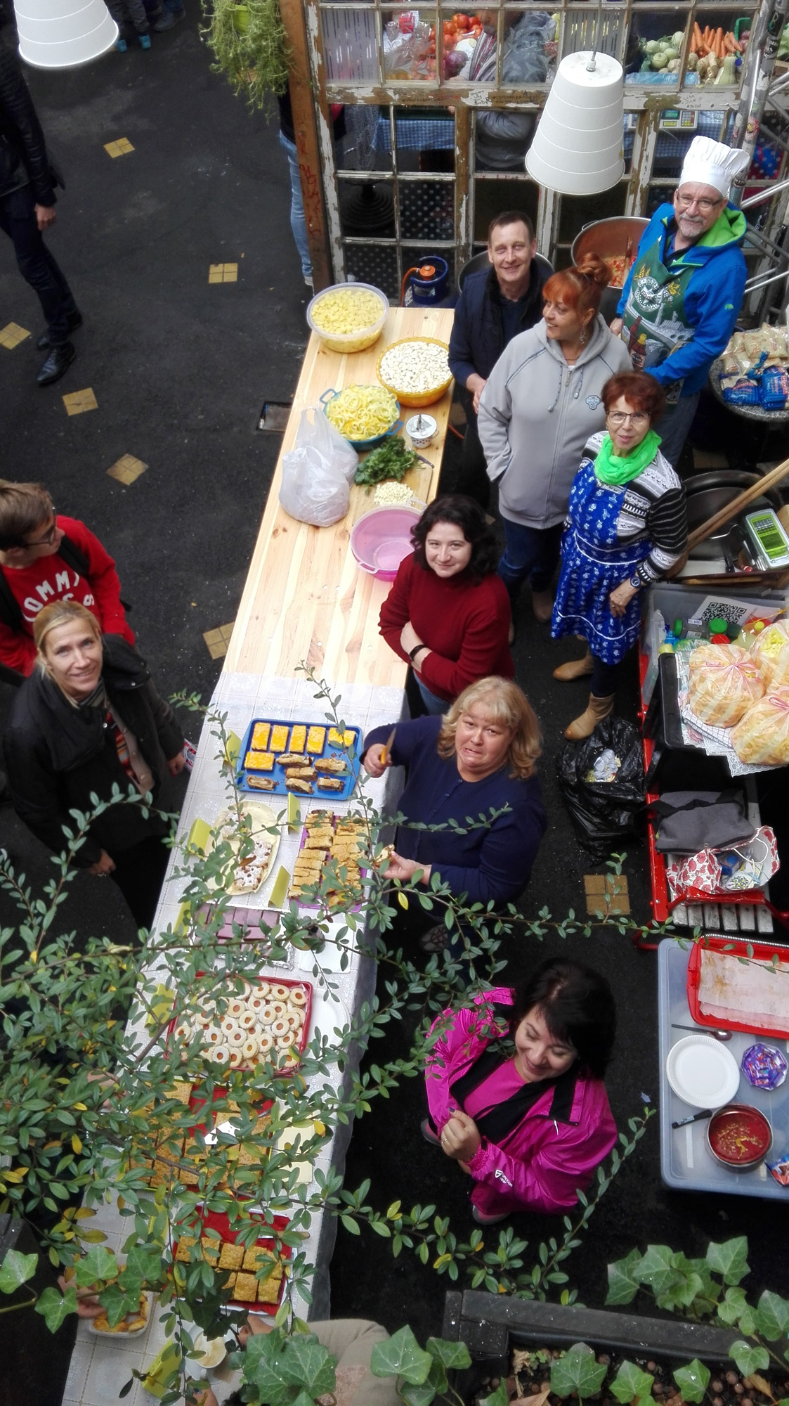 Résztvettünk a Szimplakerti Háztáji Piac Közös Lábos jótékonysági főzésén. Gulyásleves és tarhonyás lecsó volt a menünk, valamint házikészítésű sütemények. A megmaradt ételeket a Heti betevő képviselői vitték el a rászorulóknak.